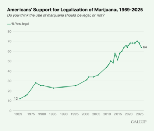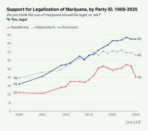 A super interesting Gallup poll has come out showing the views on legal marijuana dropping off a cliff for Republicans. Although a majority still supports legalization, the trends are showing that we may have hit peak support.