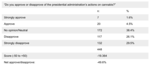 A new poll has come out that shows marijuana consumers are not happy with Trump’s inaction to date, with only 6% approving.